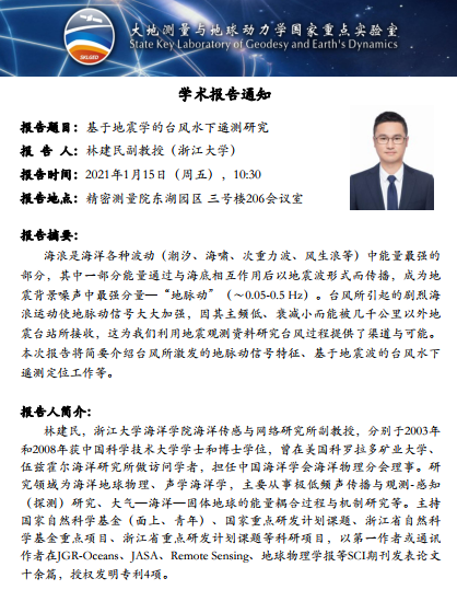 2021年1月15日巅峰国际大地测量与地球动力学国家重点实验室学术预告