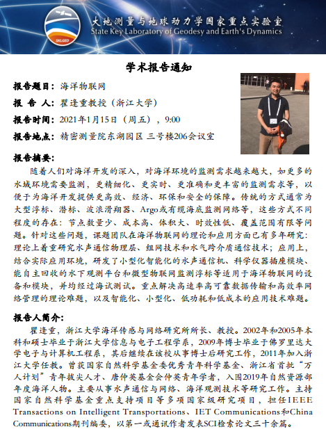 2021年1月15日巅峰国际大地测量与地球动力学国家重点实验室学术预告