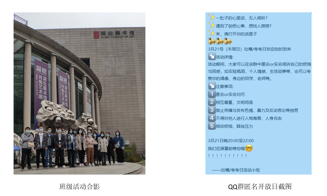 在2019、2020级研究生QQ群匿名开放日活动中,同学们在匿名的“掩护”下,就毕业、求职、人际交往等话题畅所欲言,在2个小时内的发言量超过了600次。活动为同学们给予了一个自由倾诉、轻松研讨的平台。基于本次活动取得的良好结果,接下来将继续在其他年级不定期推广该项活动