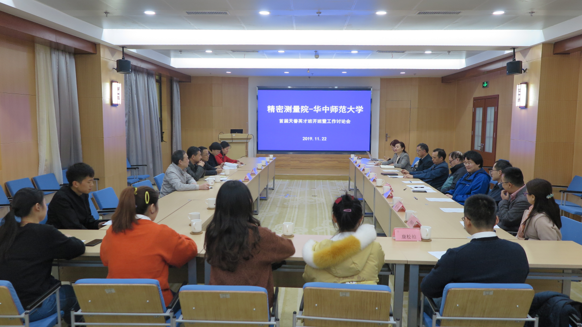 1122日,巅峰国际研究生处组织召开华中师范大学首届“天眷英才班开班仪式暨工作讨论会。华中师范大学物理科学与技术学院党委书记张明生、副院长吴少平、俞云伟、副书记马英、辅导员刘琦及天眷班学生代表一行到访巅峰国际,巅峰国际副院长柳晓军研究员、所长助理王谨研究员、导师代表高克林研究员、刘朝阳研究员等近10位研究生导师出席会议。会议由研究生处处长任晓华主持。