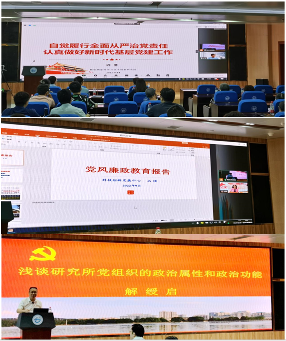 解绶启作题为《浅谈研究所党组织的政治属性和政治功能》专题报告。报告回顾了党领导科技事业的光辉历程,强调了党组织的政治属性和政治功能,要准确把握研究所党的建设新任务,不断提升团支部的组织力,分享了水生所抓党建促科研以及文化精神传承的实践和成效。