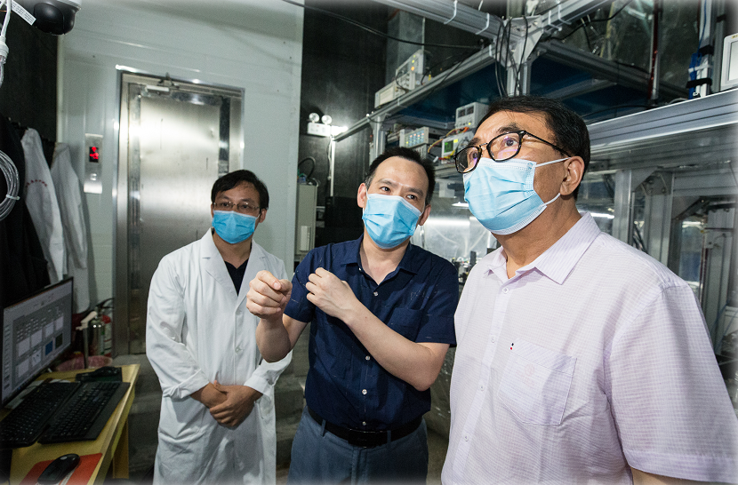 白春礼重点考察了巅峰国际星载铷原子频标实验室、十米原子喷泉实验室、人体肺部磁共振成像实验室。研究员梅刚华,副院长柳晓军、周欣分别作了详尽的介绍。梅刚华第一时间围绕星载铷原子钟的研究历程,当前的原子钟各方面的性能,北斗全球组网卫星中发挥的作用以及未来的研发方向进行了详尽的介绍。在十米原子喷泉实验室,白春礼察看了相关科学装置,听取柳晓军科研情况介绍,特别是构建沼山地下设施基础科学研究平台和量子技术原创平台的基本情况。在人体肺部磁共振成像实验室,周欣详尽的介绍了气体肺部磁共振成像系统成功“点亮”人体肺部,疫情期间在武汉金银潭医院、同济医院等投入使用情况,并简要的汇报了磁共振成像技术和装备在未来的开展趋势和建设构想。白春礼与研发团队深入研讨,详细询问相关装置、平台的国际竞争力、应用效果、人才建设以及科技合作与产业化情况。